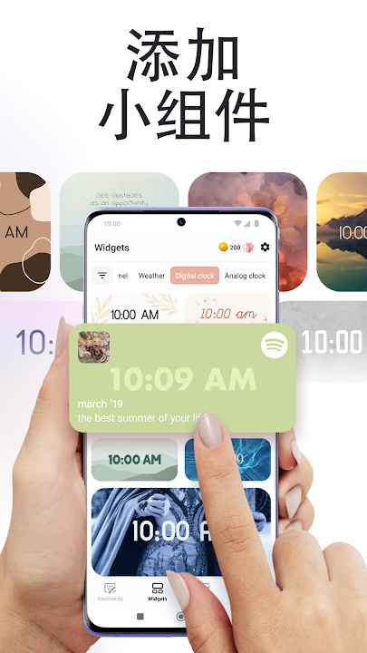 - 小组件:定制你的手机小组件,打造专属风格。你可以选择不同风格和功能的小组件,从时钟、日历、天气到备忘录,统统可以根据你的喜好来设计、让你的手机桌面不仅美观,还更加实用。每个小组件都是你个性的展示,随时随地都能感受到自己的独特品味。🕰️