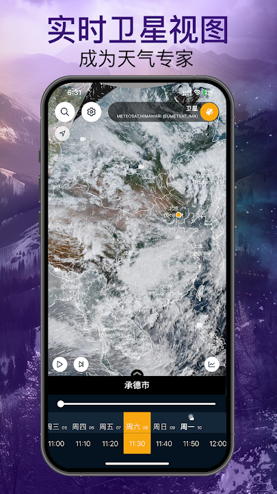 天气预报程序在将来的三天时间内以一小时的进度显示。接下来天数则以三个小时的进度来显示。来自该位置的用户也可以观看网络摄像头图像或日出/日落信息。