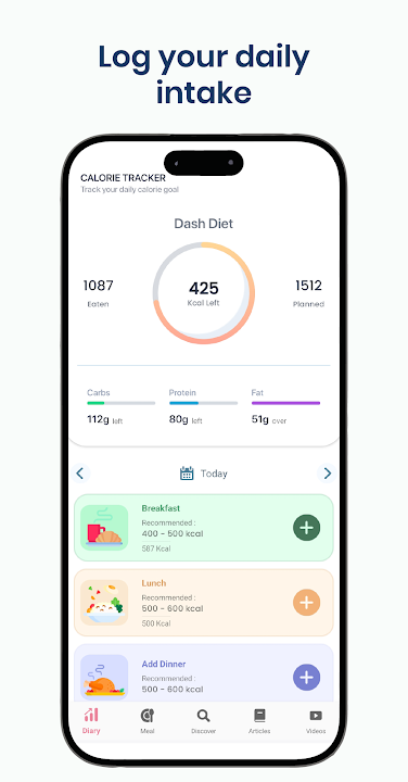 Dash diet app for hypertension: Healthy low sodium recipes & food tracker.