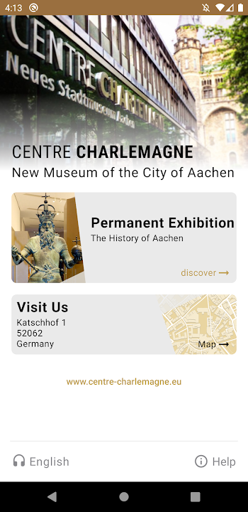 The exhibition at the Centre Charlemagne in Aachen lets you discover the history of the city. Using this app you can hear or read information on the permanent collection and selected temporary exhibitions of the museum.