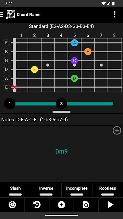 Get a chord name for EVERY fingering. Without exception. Including slash chords, inversions, incomplete & rootless chords. Whether on the Piano, Guitar, Bass or Ukulele. Supports any tuning. With and without capo. Discover alternative fingerings and expand your musical knowledge of chords.