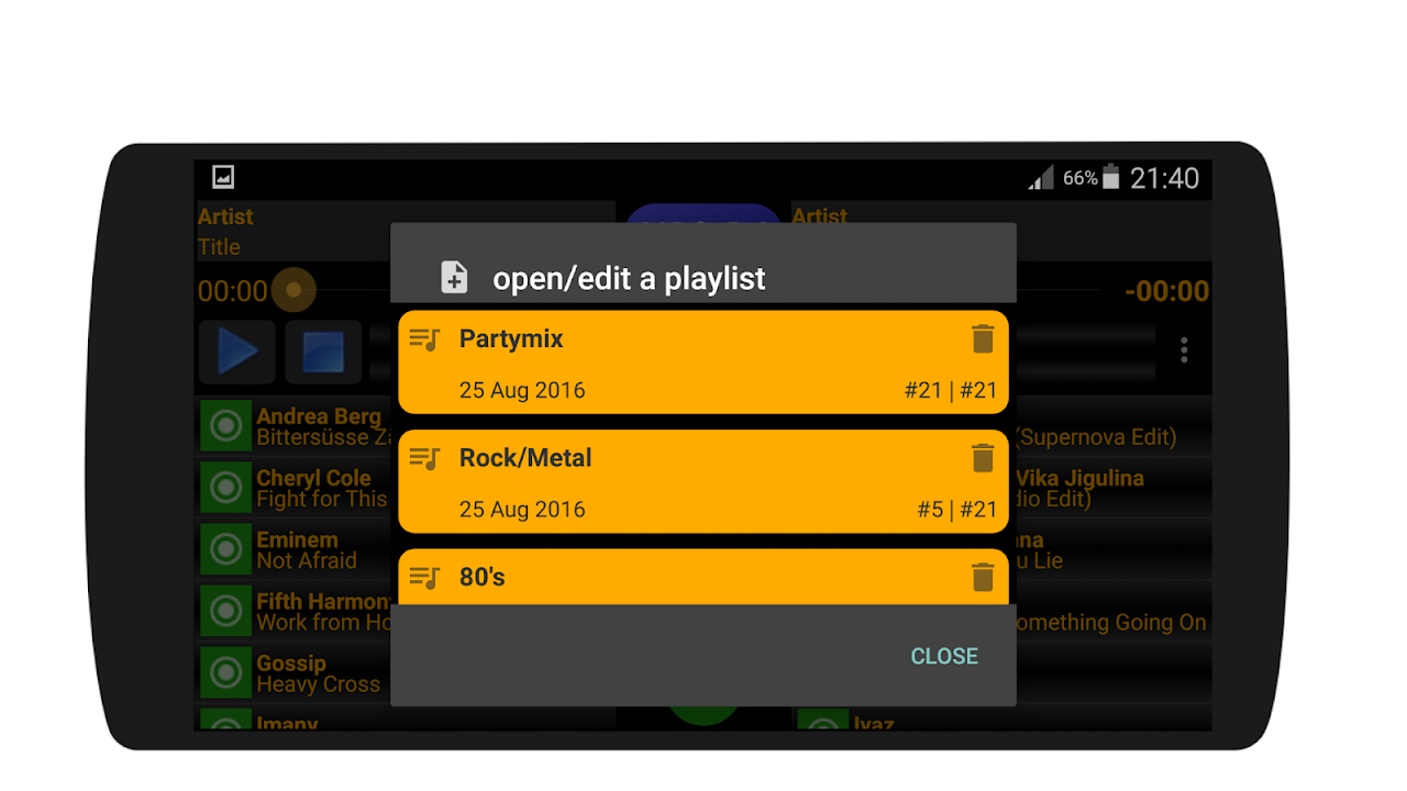 MP3-DJ PRO is a party player with 2 playlists and a music library