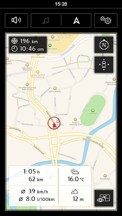 Total control everywhere: With the VW Media Control app, your tablet or smartphone becomes a remote control for your Volkswagen Infotainment system. For example, you are able to see your current position, the distance to the destination and the remaining driving time on the display. So the question "Are we there yet?" is answered within a blink of an eye. Google® search locations can also be easily transferred to the navigation system as the destination, such as an address from the appointment calendar or the phone book on your mobile device.