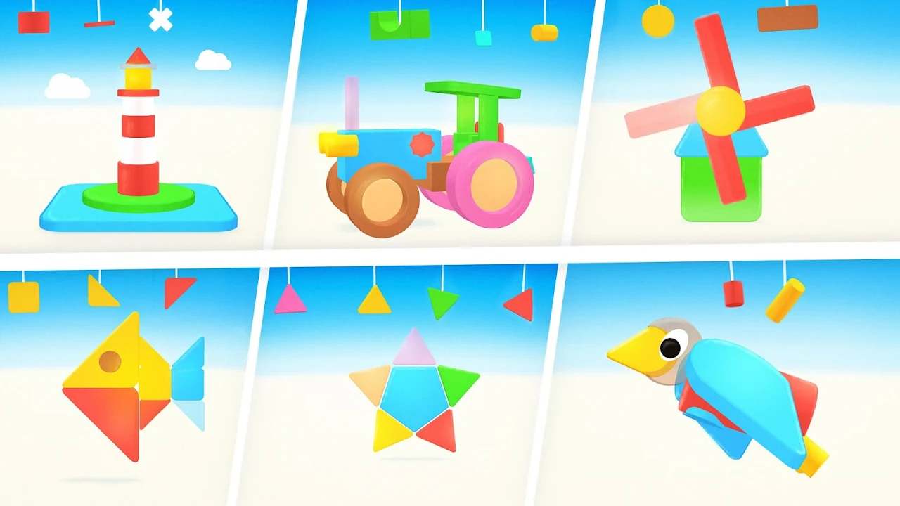 此遊戲的特色是 2D 平面 和 3D 立體圖形。例如,孩子會學習分辨四方形和立方體,從而培養他們的空間思維能力。