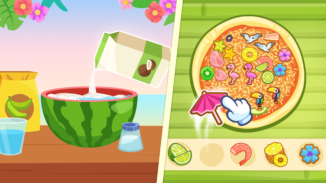 With free cooking games for kids & food games for kids, your little pizza maker will learn how pizzas are made step-by-step, starting with mixing flour, water, and oil to prepare the dough — just like in real life! Every activity in this cooking restaurant game is safe and kid-friendly, designed with children and fun games for kids in mind. Important settings are protected from accidental taps; best of all, this food game has no ads to disrupt the fun of kids cooking games & pizza making games.