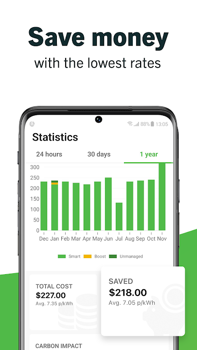 • Earn reward points by smart charging and spend them on smart rewards, from gift cards to zero carbon EV charging with carbon off-setting.