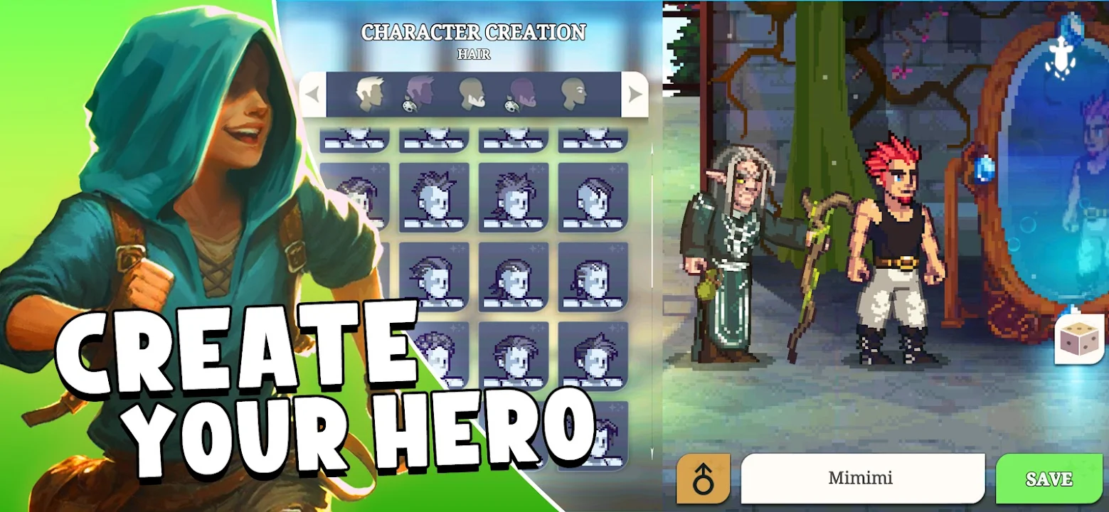 • Pixel art RPG visuals with retro fantasy charm