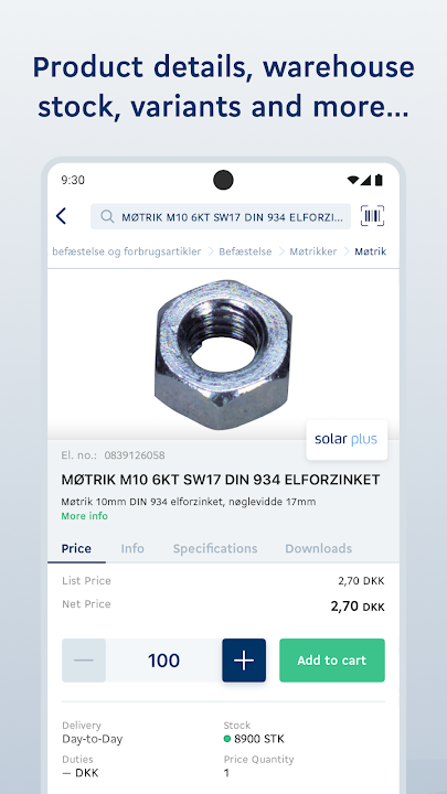 With Solar Mobile you will easily find what you need to buy. The improved filtering options make it easier to find the right products. Add your favourite service center in the app and pick up your order locally - or get it delivered as a Fastbox. If you don't have the time to complete your order right away, you may save it as a draft and open it later - either through the app or from the web shop. If you happened to get the wrong product you can quickly create a return order using the app.