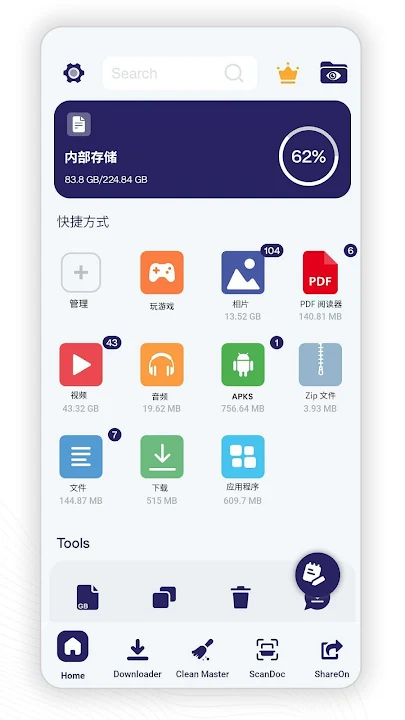 完美分类 使用文件管理器,您可以轻松检查各种类型的文件夹,包括照片、视频、文档、应用程序、下载、音频、zip 文件等。