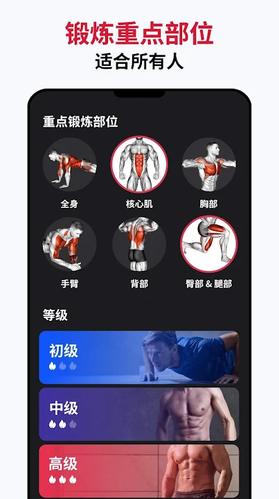 无论你是健身小白还是健身专家,都能根据自身的健身水平获得适合自己的训练计划。你也可以选择不同计划等级,提高难度,挑战自己。