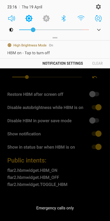 Even if your phone does not have the special HBM hardware setting, this app will force maximum screen brightness, which is really handy when you are outside in the sun.