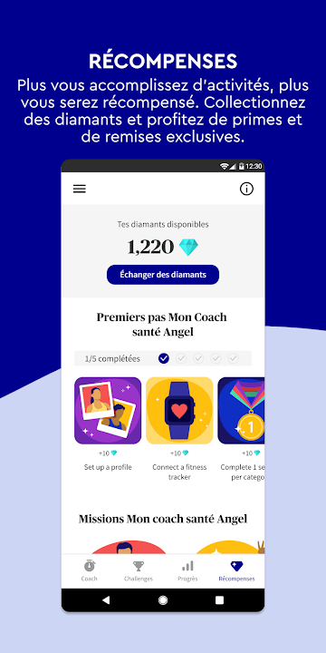 - 奖励。对于每一个有助于健康生活方式的举动,您都可以获取钻石,您可以将其兑换成代金券或用于为地球采取行动。