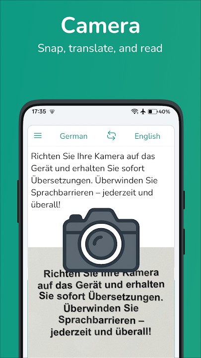 將相機對準文本,即可獲得德語和英語之間的即時翻譯