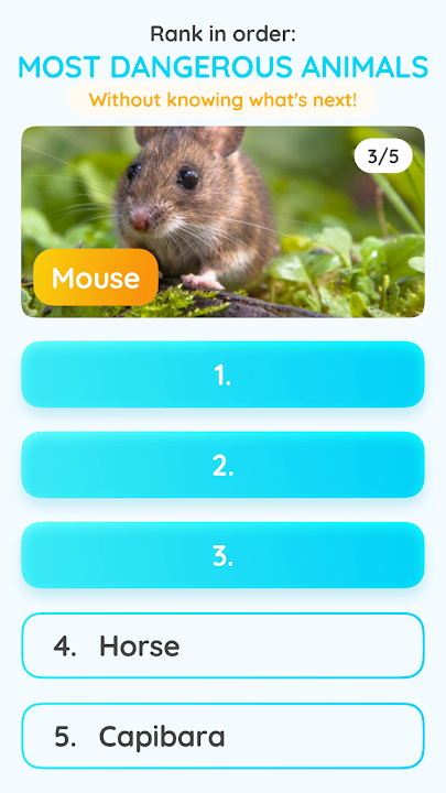 Rank your favourite food, sports, holiday destinations without knowing what is next in a category!