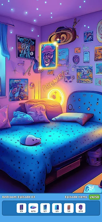- 简单的游戏玩法和规则。 观察场景,找到隐藏的物品,完成场景!