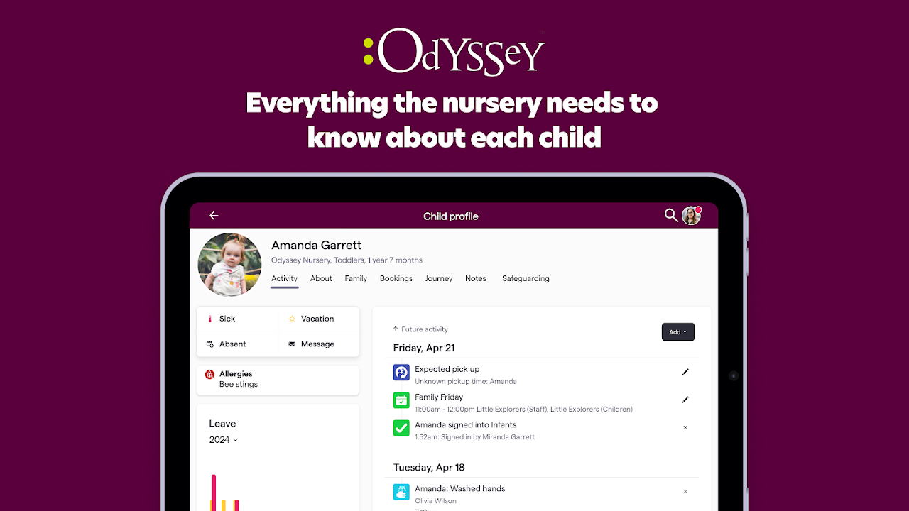 體驗參與孩子在奧德賽 – 全球幼兒園旅程的樂趣。 Odyssey 每天更新有關小睡、美食、學習里程碑和神奇時刻的信息,透過精心策劃的個人化新聞源,讓您孩子的一天充滿生機。我們的應用程式在設計時考慮到了安全性和連接性,使我們能夠輕鬆地與您分享珍貴的照片和影片。透過雙向訊息傳遞和即時通知,保持比以往更緊密的聯繫,確保觸手可及的無縫通訊。此外,還可以享受定期推出的創新新功能,以提升您家人的體驗。
