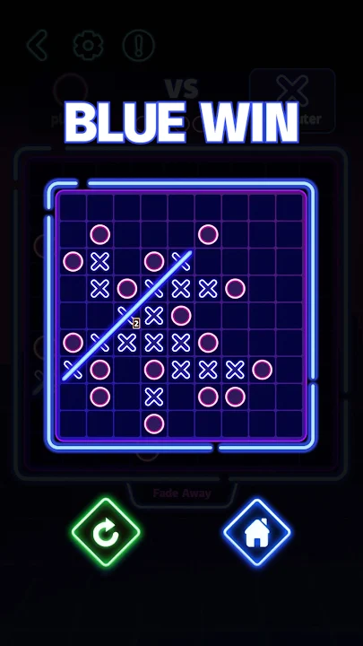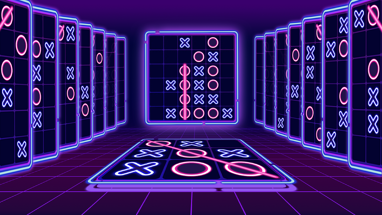 ⭐ 充滿活力的霓虹燈視覺效果為這款經典的井字策略遊戲和雙人遊戲帶來了現代氣息。