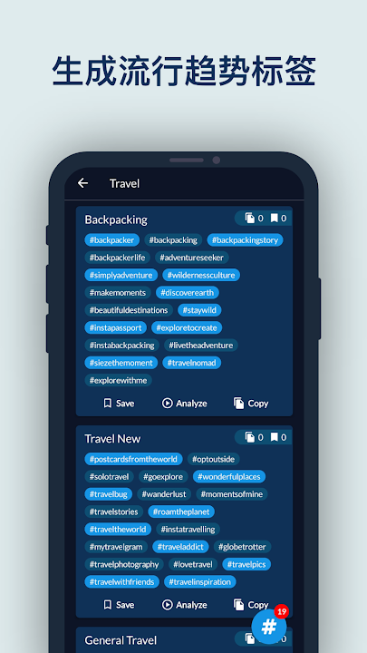 Hashtags AI:粉丝增长助手是一款为专业用户设计的标签生成应用。我们的“标签管理器”和“粉丝增长助手”人工智能工具可用于任何社交媒体平台。只需输入您的基础标签,它就会从我们的标签数据库中生成趋势标签,以获得更多点赞和粉丝。我们还为所有专家选取了许多流行标签。我们的大多数专家用户都使用“标签生成器”为社交媒体平台生成趋势标签,从而有机地获得更多的点赞和粉丝。