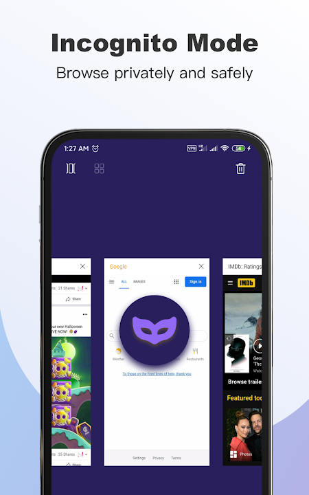In the private browser downloader application, you can also change the background of the private browser to other styles. Switch "night mode" to protect your eyes and apply different themes to make the dedicated browser look more attractive. In addition, the adblock function can also act as an adguard or ad blocker to ensure your browsing is smooth.