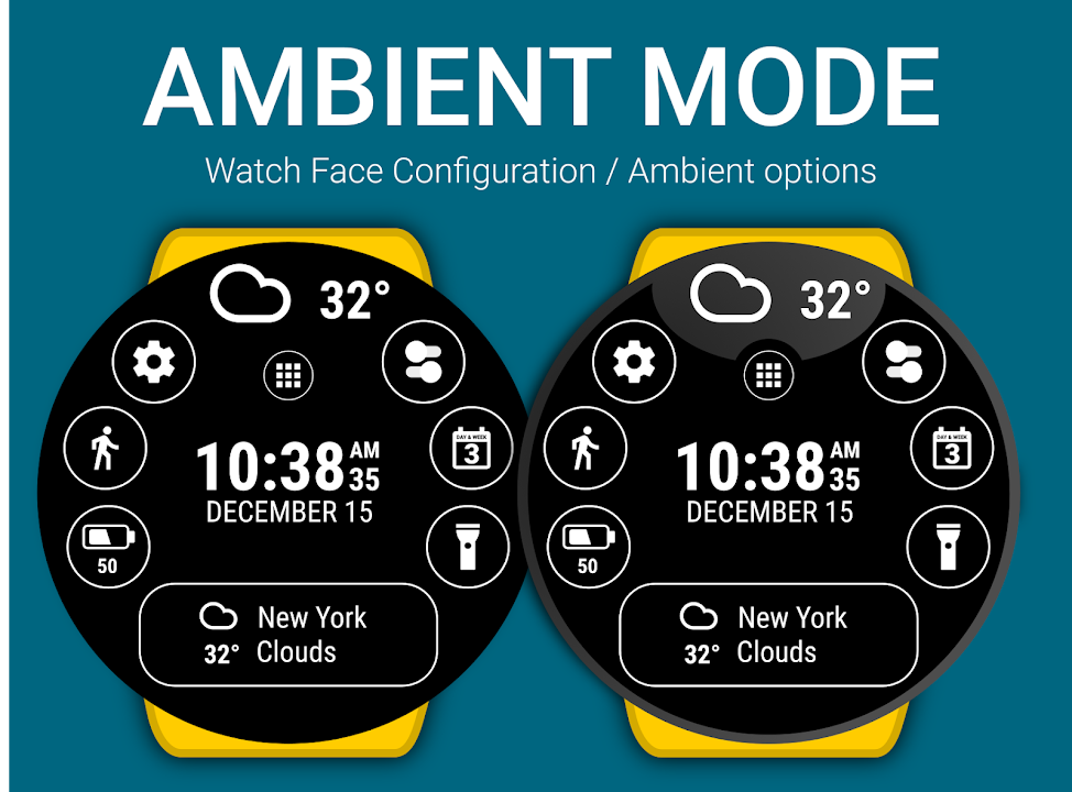 ★ Ability to set 6 small or 4 large indicators with predefined views, actions or watch app shortcuts, you can also set one elongated circle indicator for larger text