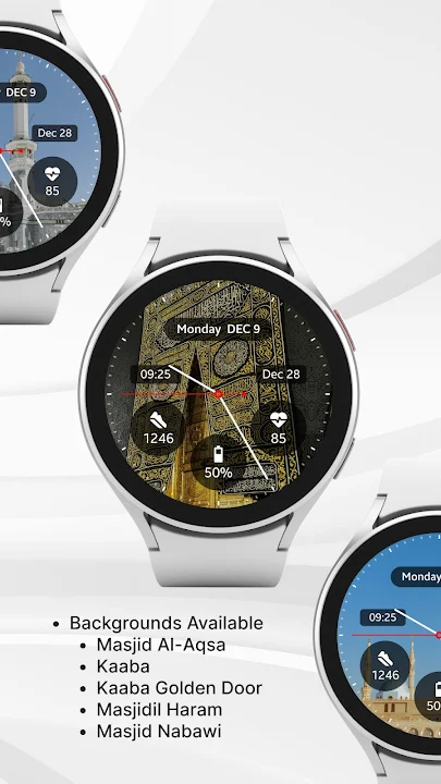 Islamic Digital Watch Face is an Islamic themed Watch Face with 6 background choices, namely Al-Aqsa Mosque, Kaaba, Kaaba Door, Grand Mosque and Nabawi Mosque also supports shortcuts for 4 complications