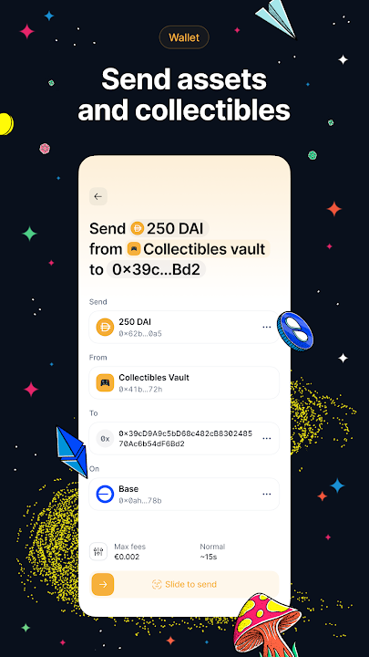 The Status crypto wallet allows you to securely send, store, and exchange Ethereum assets such as ETH, SNT, stable coins such as DAI, as well as collectibles. Confidently take control of your cryptocurrency and digital assets with our multichain Ethereum wallet app, supporting Ethereum Mainnet, Base, Arbitrum, and Optimism. The Status blockchain wallet currently only supports ETH, ERC-20, ERC-721, and ERC-1155 assets; it does not support Bitcoin.