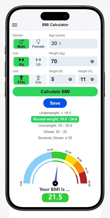 Easily monitor your fitness with our BMI Calculator – a smart tool for quick and accurate BMI calculation. Stay on top of your health goals with a built-in weight tracker and a comprehensive health tracker to track progress effortlessly. Achieve your ideal weight and maintain a balanced lifestyle with this all-in-one solution! 🚀💪