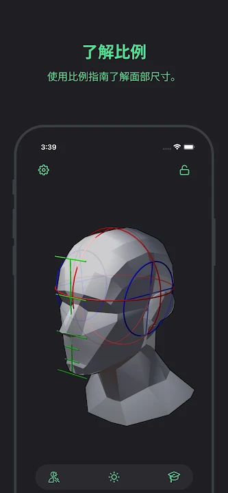 使用 Head Model Studio 画出更好的肖像。从简单平面到复杂几何,循序渐进研究面部细节。它是学习和研究面部细节的最佳 iOS / iPadOS 应用程序。将您的素描提升到新的水平。