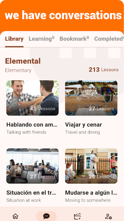 该应用程序还为以西班牙语为母语的人提供会话练习,让用户可以提高口语技能并获得第一手语言体验。此外,西班牙语听说还提供视频和音频课程,以提供交互式学习体验,帮助用户掌握西班牙语会话。