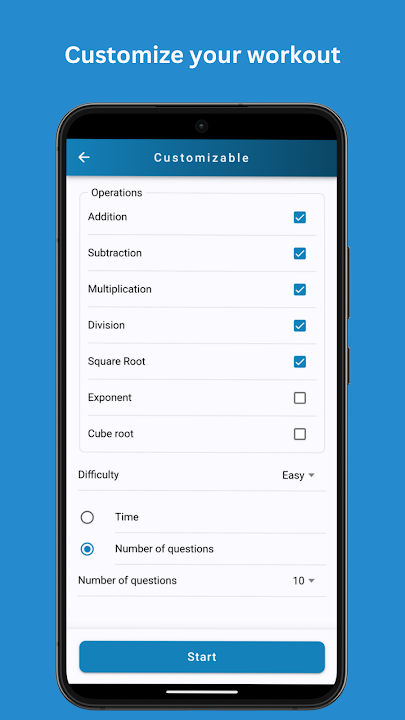 โข Adjustable Questions: Choose 10, 20, or 40 problems per round