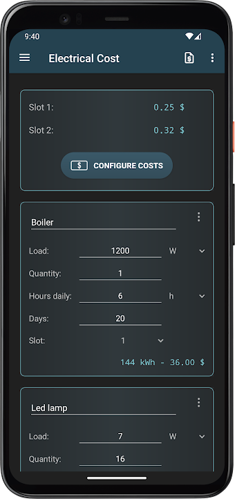 ✓ Power consumption and cost per day/week/month/year