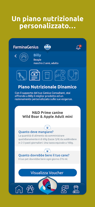 個性化的營養計劃是保持寵物健康的基礎。感謝我們的免費諮詢服務,您將獲得動態的營養計劃。為什麼是動態的?因為它會根據您寵物的健康和習慣而進化:可能需要根據生活中發生的變化來改變其飲食。通過這個應用程序,您將獲得執行每一步所需的所有信息。”