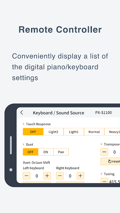 Connect a smart device to be able to make settings remotely, without the need to touch the digital piano/keyboard.
