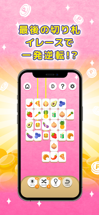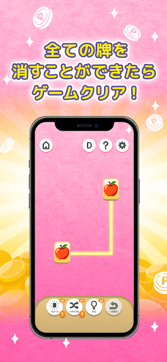 It is a puzzle game where you erase tiles with the same design that can be connected with a straight line that does not pass over other tiles and curves no more than 2 times, and if you can erase all the tiles on the board, you will clear the puzzle game.