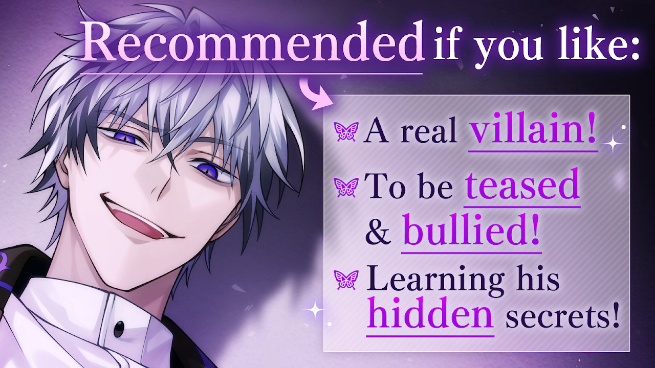 Discover more about his wicked ways and have all your secret desires fulfilled as you find your very own villainous otome love!