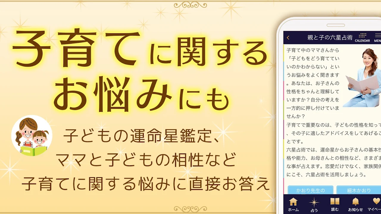 除了由六星算命传承人、养育三个孩子的妈妈细木香织讲述的“亲子六星算命”等新的算命角之外,我们还更新了之前的内容,让使用更加方便!