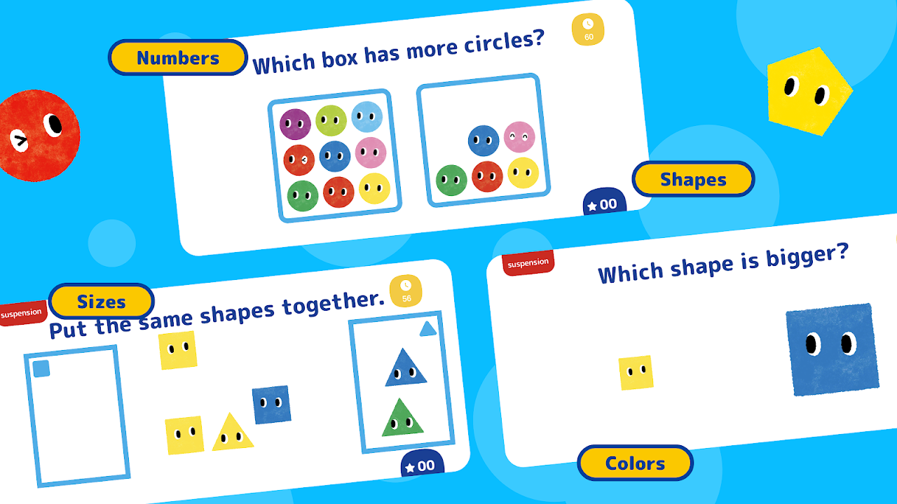 * Your children are able to learn the concepts of color, shape, number, and size!