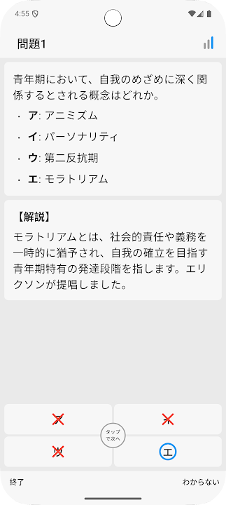 You can efficiently learn about the ethics of the Common Test. It is possible to memorize the correct answers to the questions up to the past three times. It is easy to review the questions you got wrong, and it also comes with explanations, so it is perfect for preparing for the Common Test Ethics exam.