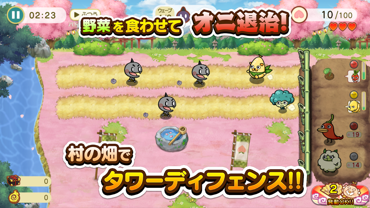 制作蔬菜并喂它们以摆脱Oni!乡村田野里的休闲塔防!