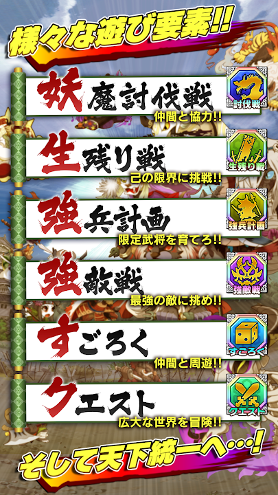 狼真田幸村、浣熊德川家康、青蛙石川五右卫门等超过 3000 种武将,打造属于你自己的最强部队,在解谜战斗中造成巨大伤害! !