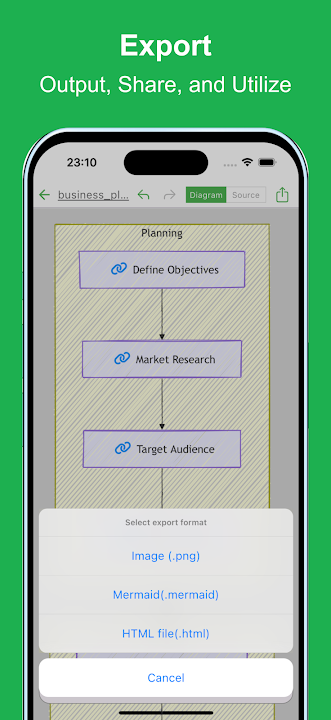 You can export the created diagrams, share it, or edit it on your PC.