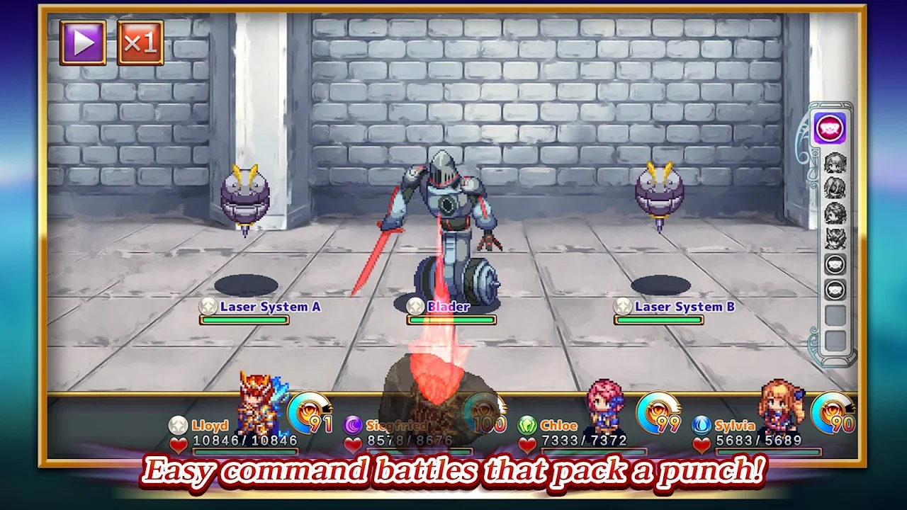 這是一款成熟的奇幻角色扮演遊戲,具有激動人心的回合製戰鬥。與多達 10 個盟友一起投入指揮戰鬥,並使用技能組合製定自己的策略。美麗的像素動畫和藝術不僅出現在戰鬥中,還出現在您在廣闊的開放世界或地牢中冒險時!繼續尋寶來提升你的地位,接受支線任務並加速戰鬥成為傳奇的新英雄!一個偉大的幻想故事已經準備好讓你拯救世界!