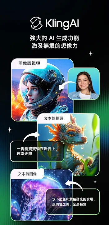 可靈AI(Kling Al)是廣受海內外創作者好評的新一代創意生產力平台,基於可靈大模型和可圖大模型,提供影片、圖片生成與編輯能力。在這裡,你可以盡情發揮想像力,也可以參考其他創作者的創作靈感,讓創意完美落地。