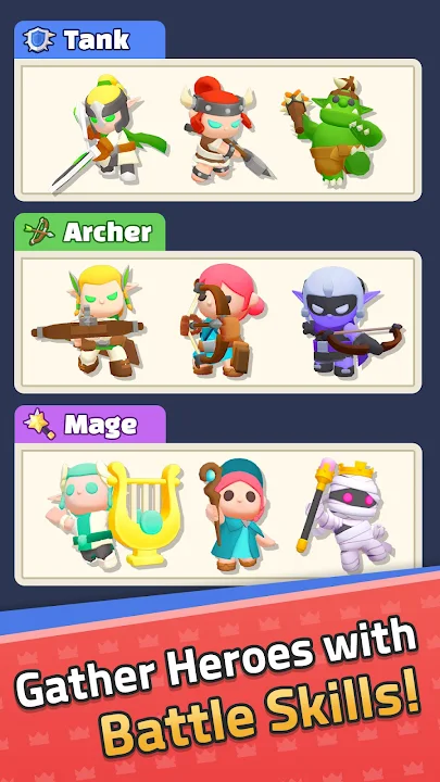 💪Strengthen and level up your heroes to build up your army. Who is the hero who will make your kingdom stronger?