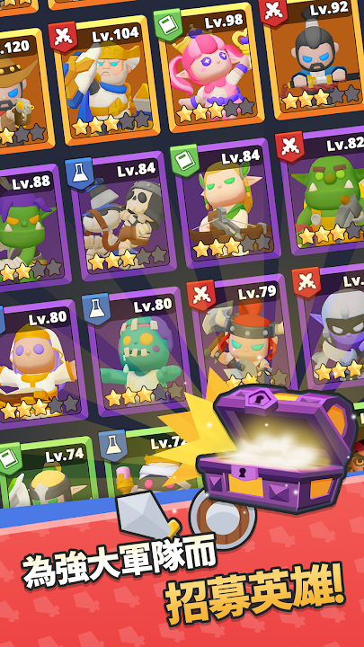 透過有趣的戰鬥和研究收集英雄,並進行升級吧。