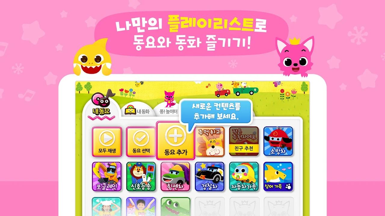 從碰碰狐鯊魚家族的流行童謠開始,你可以一起唱歌跳舞,還有很多有趣的內容,如動物童謠、汽車童謠、恐龍童謠!