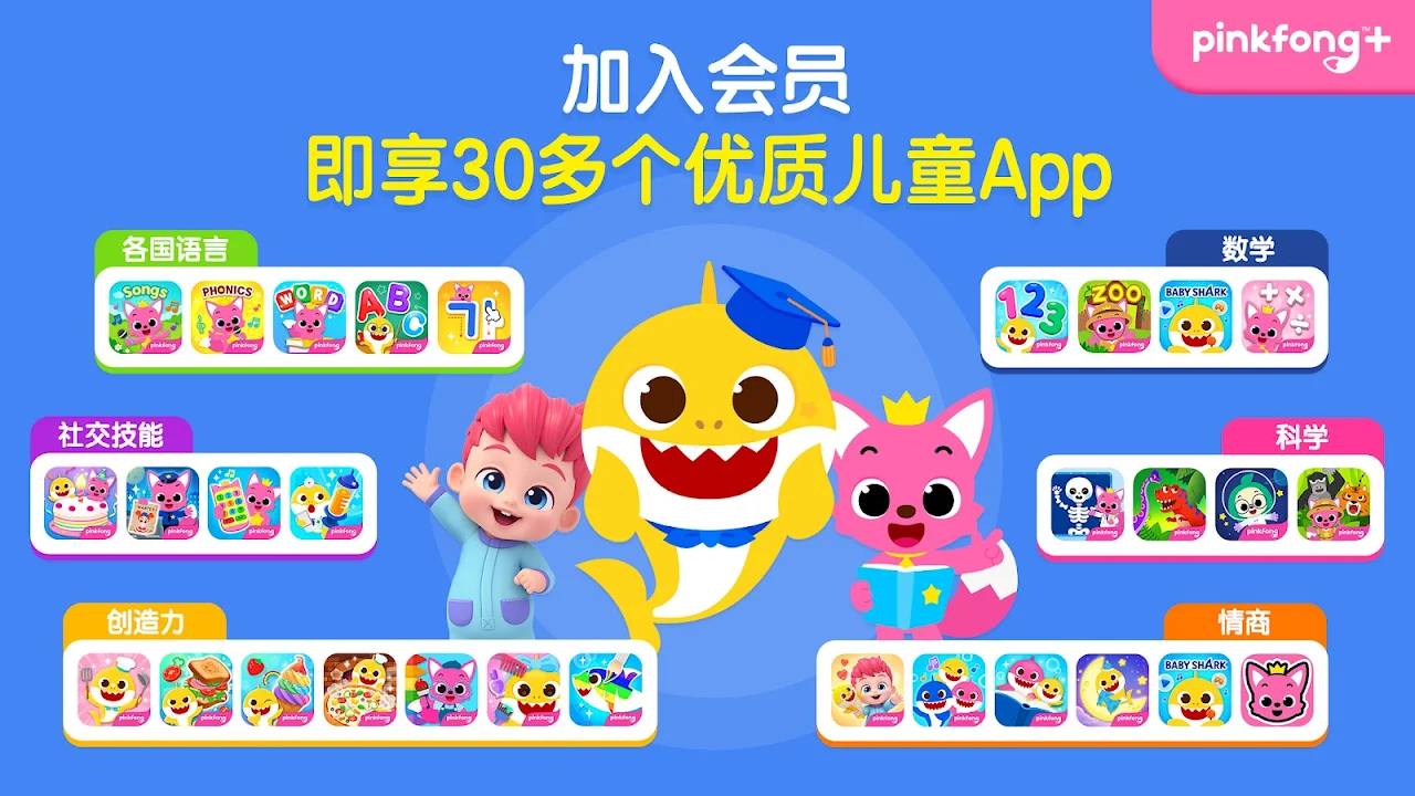 - 体验Pinkfong独特拥有的专业知识的优质儿童会员服务!