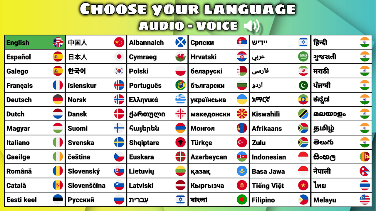 Supported Languages with Audio and Voice: