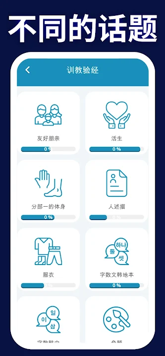 在初学者 A1 级应用程序中学习韩语单词。学习韩语从未如此轻松简单!
