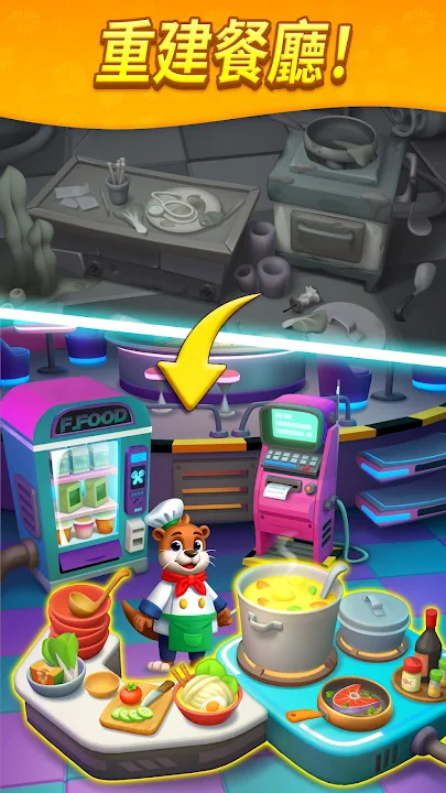 簡單易上手,只要配對相同的新鮮食材,合併升級創造新的高級食譜,直到滿足了製作美味料理的所有條件!